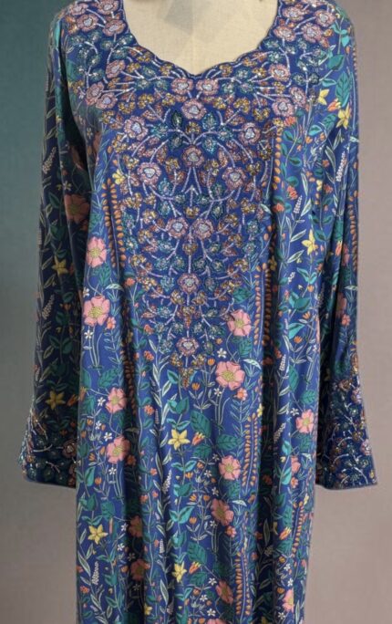 Designed in a deep green tone, adorned with delicate floral patterns that create a soft artistic composition, blending shades of pink, gold, and harmonious accents that enhance the beauty of the piece.